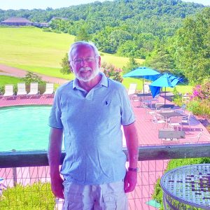 Hank Johnson poses with the rolling hills of Chaumette Winery and Vineyard behind him.